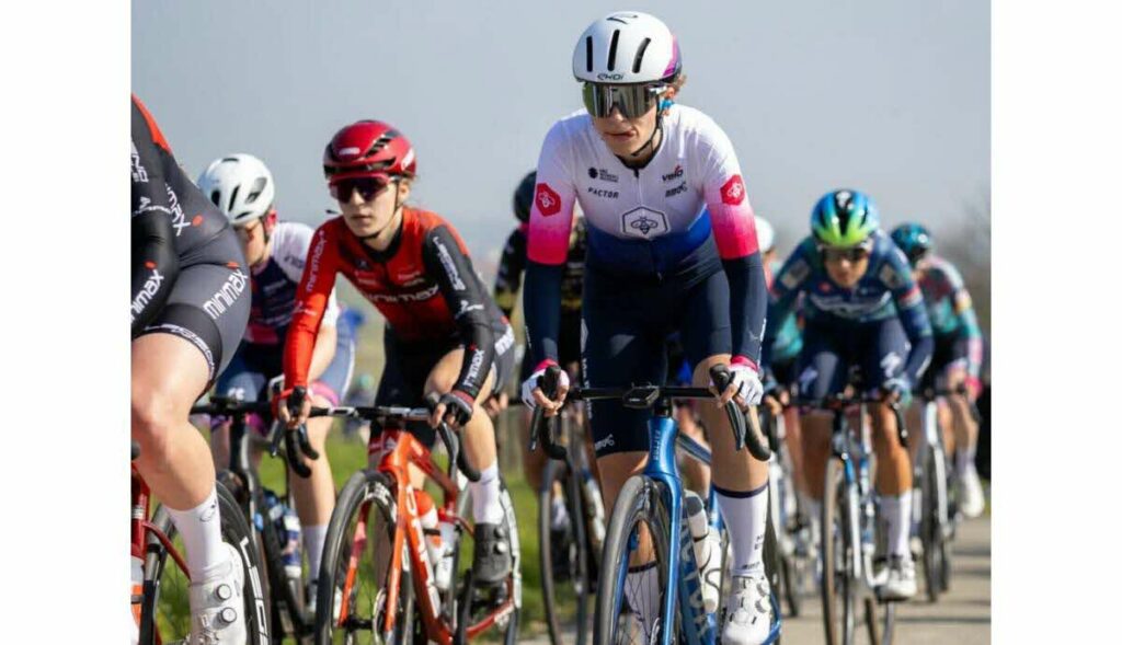Et enfin il y a l’équipe, avec la constitution d’un groupe de cyclistes, dans un plateau international très concurrentiel. L’intersaison 2025-2026 nous a été néanmoins favorable puisque trois équipes du circuit ont arrêté leur fonctionnement, ce qui a libéré des coureuses de très bon niveau. En amont, nous contactions les coureuses disponibles pour leur faire part de notre projet et ses valeurs. Et nous avons créé un comité de recrutement, avec Émeric et notre directeur sportif Daniel Boucheron entre autres, qui échangeait avec les coureuses contactées, et était chargé de l’arbitrage entre nos possibilités financières et nos ambitions de développement futur pour définir les offres contractuelles. Nous avons ainsi recruté 10 coureuses pour commencer la saison.